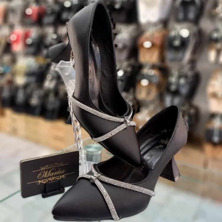 پاشنه باریک نگینی (یه مدل شیک مناسب خانمای شیک پوش) زیره نیولایت پاشنه طبی چرم خاویاری نگین خارجی سایز 41